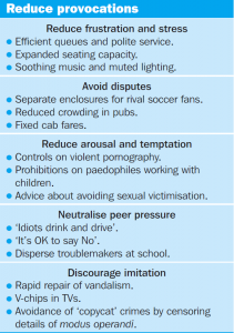 Studiind mediul carceral și barurile, Richard Wortley a observat că aglomerația, lipsa de confort și comportamentul nepoliticos provoacă violență în ambele medii. Aceasta l-a făcut să susțină că prevenirea situațională se concentrase prea mult doar pe oportunitatea infracțiunilor și că neglijase caracteristicile situației care duc la sau grăbesc o infracțiune. Pe baza muncii lui Wortley, Clarke și Cornish au inclus cinci tehnici de reducere a ceea ce ei au numit „provocări” în noua lor clasificare a tehnicilor situaționale.[3] Acești factori sunt foarte relevanți pentru prevenție. |